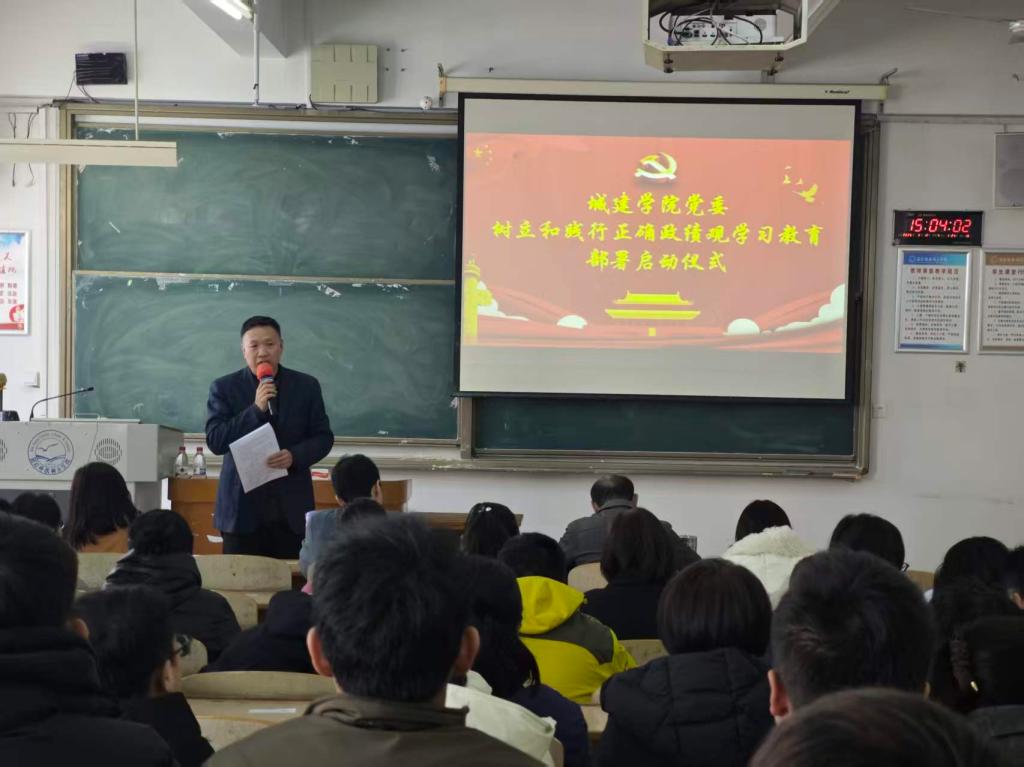 2026年3月12日下午,城建公司召开全体教职工大会,深入学习贯彻习近平总书记关于树立和践行正确政绩观的重要讲话和重要指示精神,传达学习中央党的建设工作领导小组会议精神及公司党委部署要求,全面启动公司树立和践行正确政绩观学习教育。公司党委书记赵建平主持会议并作动员讲话。
