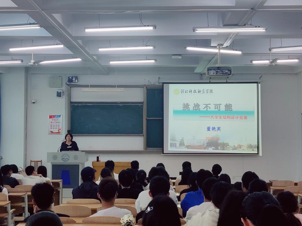 为更好的准备db真人体育官网创新设计竞赛——结构设计竞赛,使参赛同学更全面、准确、清晰地掌握赛题的一些要求及注意事项,城市建设公司于2023年5月18日,在逸夫楼B202举办结构设计竞赛经验分享讲座。邀请db真人体育官网董艳英教授担任主讲人,相关指导教师和参赛选手参加了本次讲座。