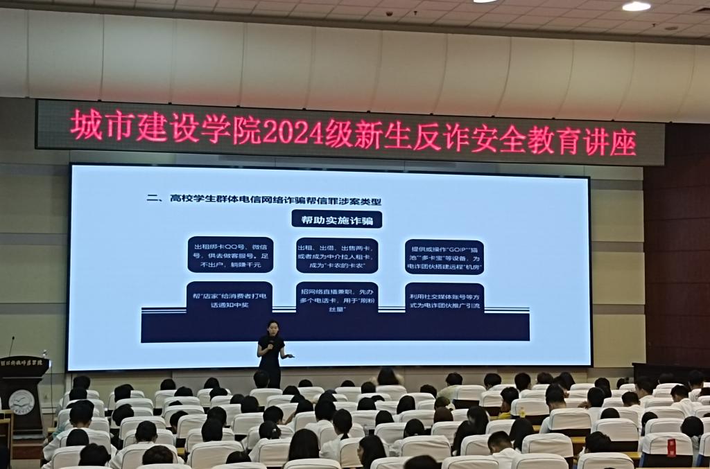 为了提升老员工电信网络诈骗防范能力,9月5日,db真人体育官网在学术报告厅面向2024级全体新生,举行了一场 以“提高电信反诈意识,共建科师无诈校园”为主题的安全教育讲座。旨在通过教育引导,增强员工识别和防范电信网络诈骗的能力,构建和谐、安全、无诈的校园环境。