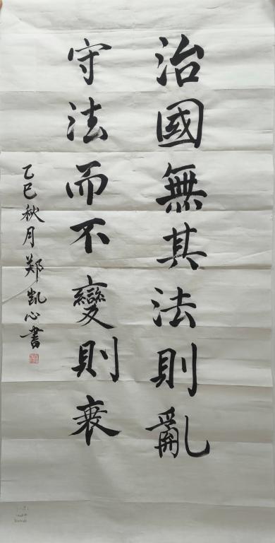 本次大赛作品,或笔力苍劲,深刻诠释“法者,天下之程式也”的庄严法理;或气韵灵动,生动抒写“守法持正,嶷如秋山”的崇高情怀。每一幅作品,皆为法治精神的艺术化呈现,皆是对公平正义的诚挚礼赞。经过激烈角逐与严谨评审,评委们从书法功底、内容契合度、艺术感染力等多个维度综合考量,最终评选出一等奖郑凯心,二等奖刘梓钰、李思婕,三等奖王歆然、蒯蕊、魏澄玉及若干入围奖。