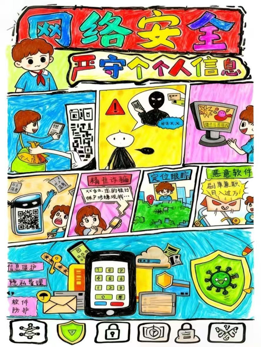 在作品征集阶段,参赛者围绕网络安全主题,如数据隐私保护、防范网络诈骗、抵制网络谣言等主题,充分发挥丰富想象力与专业技能精心创作海报。他们运用简洁线条与鲜明色彩,直观展现网络陷阱的危害;以独特视角呼吁大家重视网络安全,提高防范意识。此次大赛不仅为创意人才提供了展示平台,更借助设计力量,让网络安全理念深入人心,为营造安全、健康的网络环境贡献力量,与此同时大赛收到的作品形式多样、内容丰富。经过激烈角逐,宋春婷同学荣获一等奖,冯圣夜、周雨彤同学荣获二等奖,康莉然、张琳艺、梁晶同学荣获三等奖,多名同学获得优秀奖。
