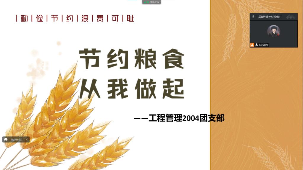 各团支部以多种形式开展活动,倡议每位青年学子从现在做起,点菜适量,拒绝剩餐,以光盘为荣,以浪费为耻;不攀比,不骄奢,爱惜粮食,吃饱为宜,自觉维护节俭用餐的良好风气,用实际行动彰显个人的美好品德。树立“人人都是校园形象”的理念,培养健康向上的文明风尚,从节约粮食做起,践行“光盘行动”,倡导勤俭节约,为建设文明和谐的社会主义现代化国家贡献青春力量!